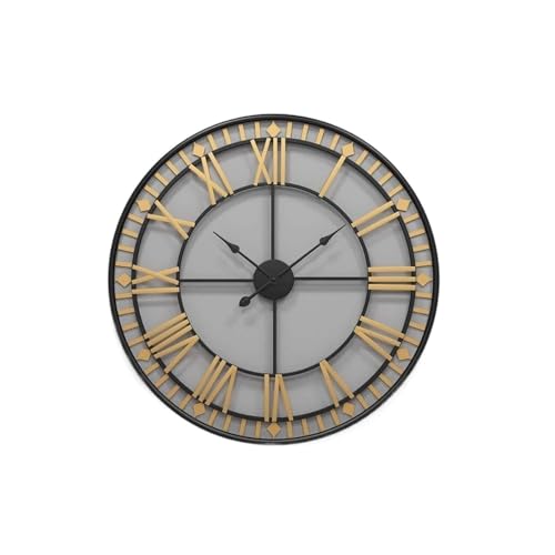 GERHWASH Modern stor väggklocka, 69 x 59 cm romerska siffror europeisk industri klocka rund metall tyst väggklocka för vardagsrum, kök, sovrum, trädgård vintage väggklockor dekor-svart