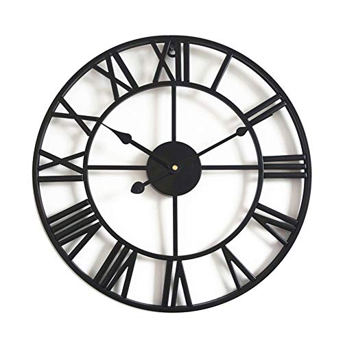 Taodyans tyst väggklocka vintage romerska siffror 40 cm tickar inte metall skelett dekorativ klocka vardagsrum kök kafé hotell kontor heminredning gåva (svart)