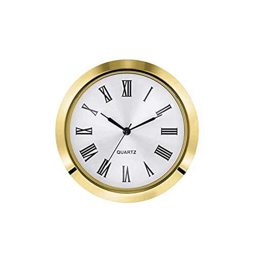 ISAKEN 55 mm (2–1/8 tum) urverk, rund klocka av kvartsklocka med romerska siffror och silvertrim, insticksurverk för 55 mm diameter, väggklocka, liten gör-det-själv urverkstillbehör