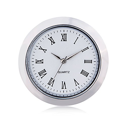 ShoppeWatch Mini Klocka Infoga Kvarts Urverk Rund 35 mm (1 7/16 tum) Miniatyrklocka Passform Vitt Ansikte Silverton Infattning Romerska siffror CK-097