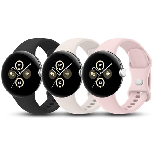 Tobfit 3 stycken armband för Google Pixel Watch 2/3 41 mm, silikon, svart/starljus/rosa, S/L, vattentät, svettbeständigt, allergivänligt, spänne, klockarmband, herr/kvinnor