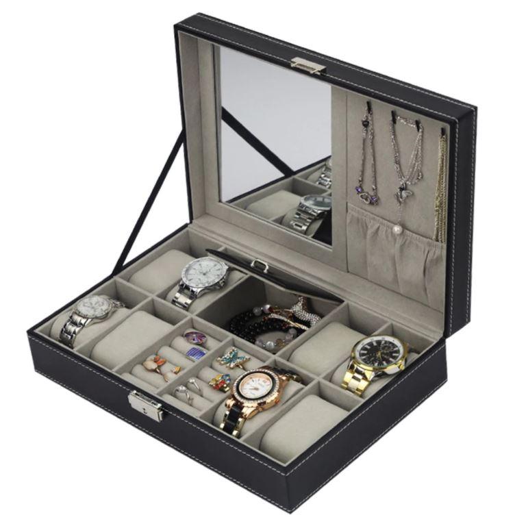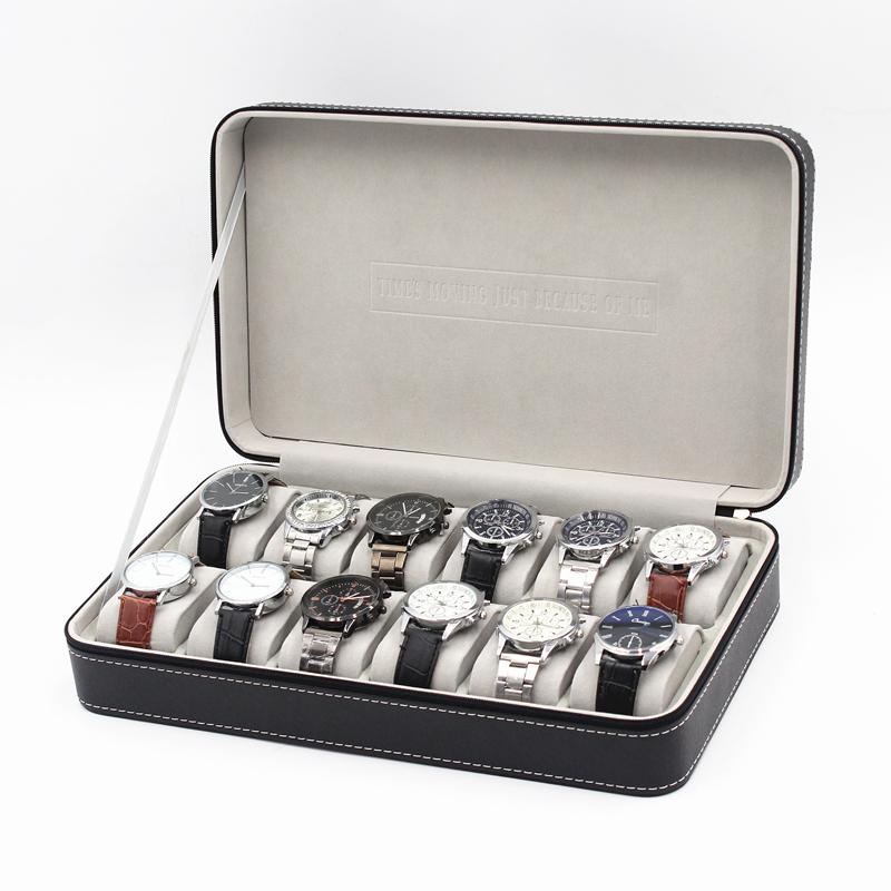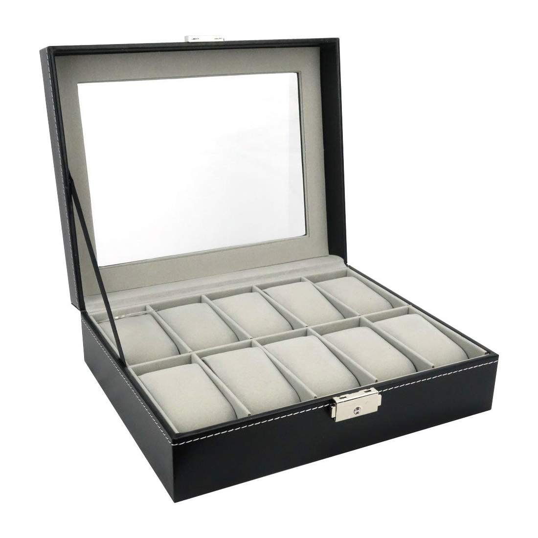 Lyxig Klockbox / Klocklåda för 10 Klockor - Svart/Grå
