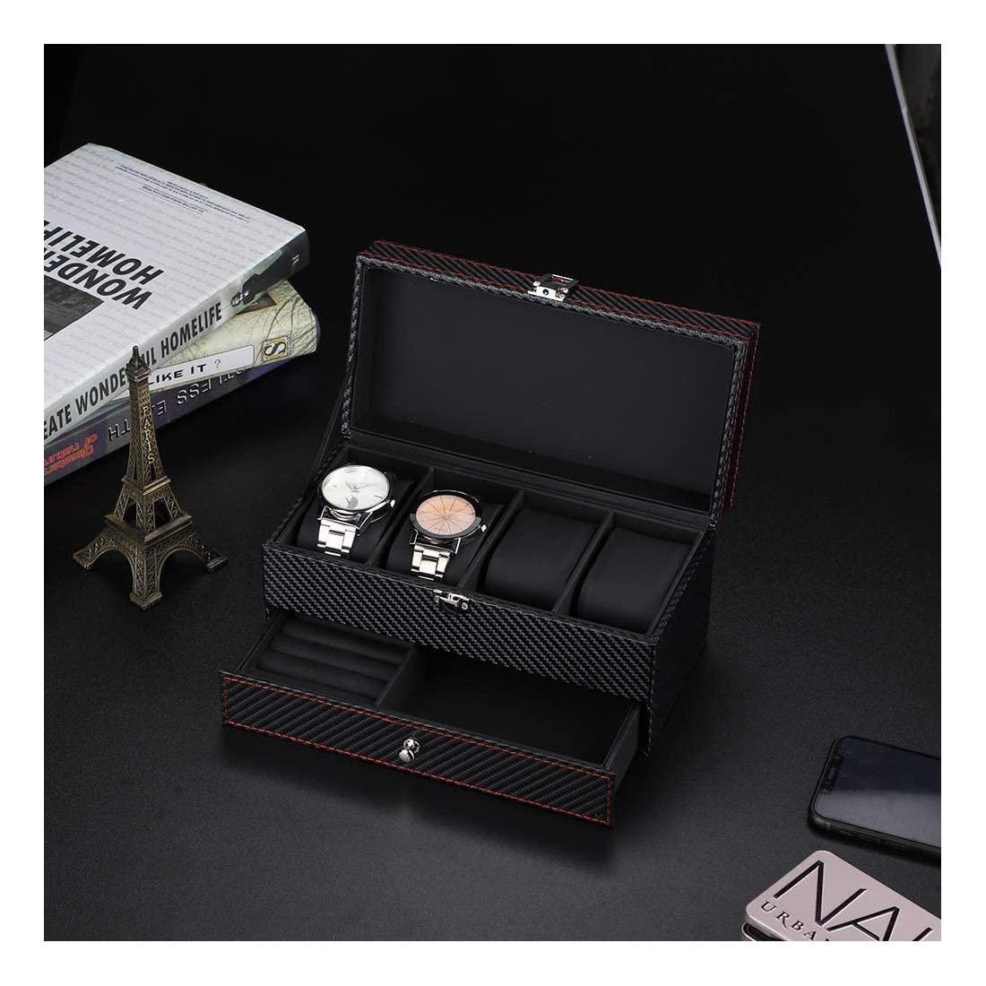12 klockors klockbox - Lyxmodell i svart carbon med röd söm