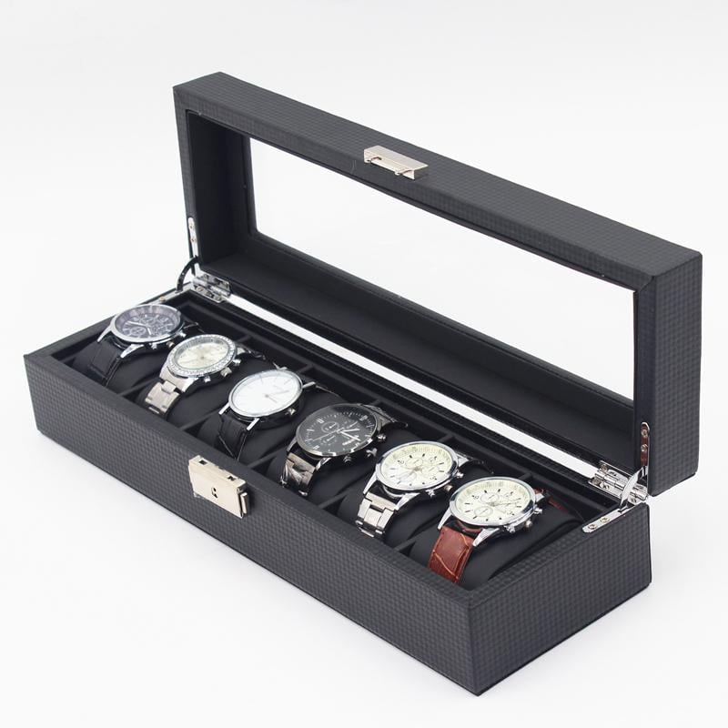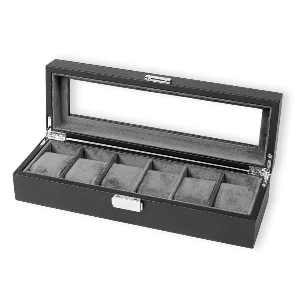 Watchbox / Klockbox 6 klockor - Lyxmodell i svart carbon