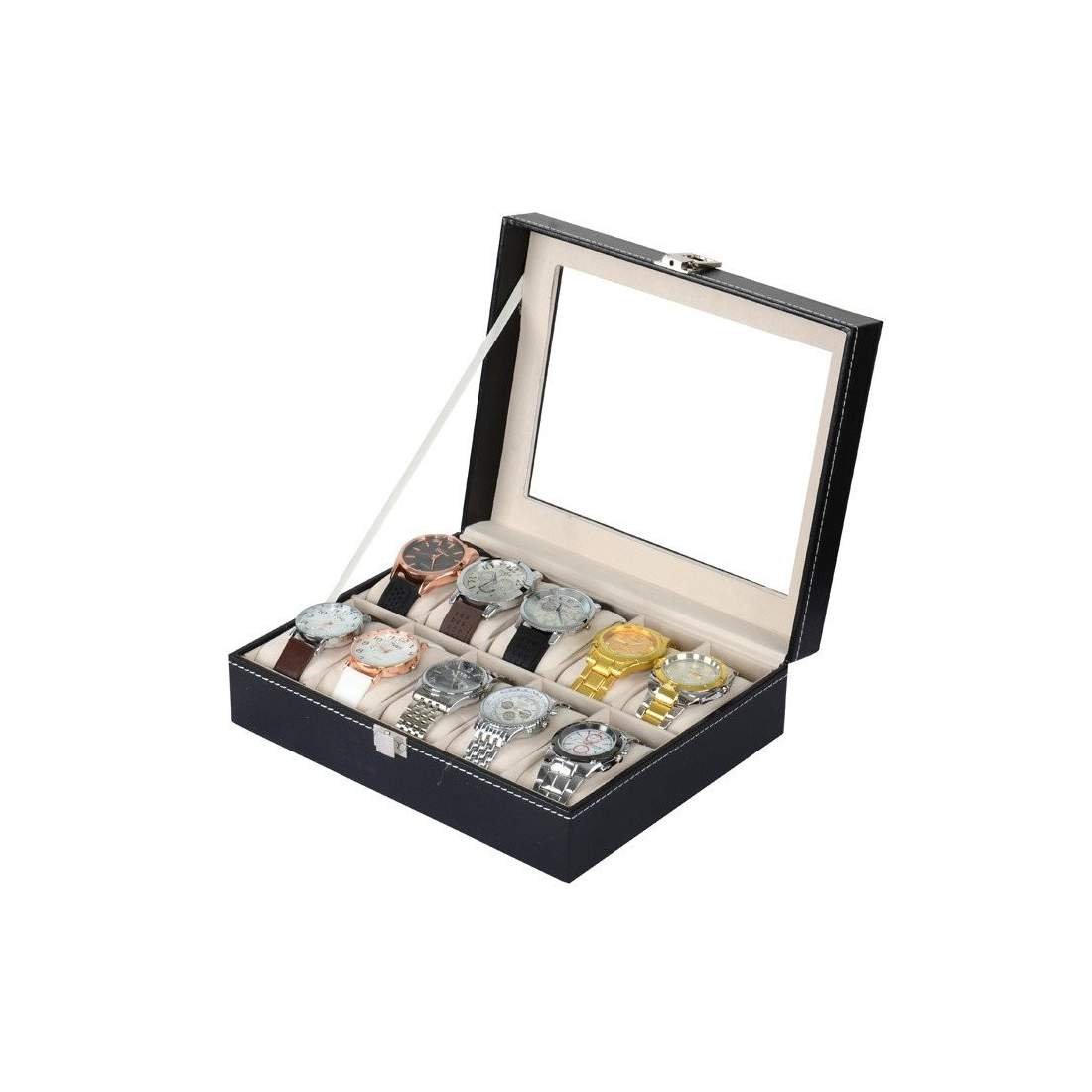 Watchbox Klockbox för 10 klockor med fönster svart med vit söm