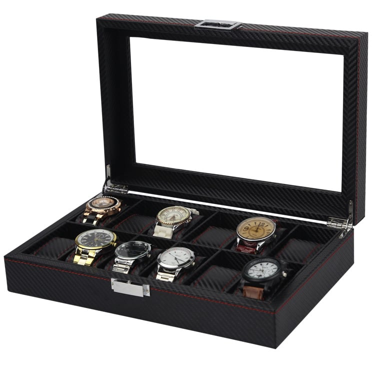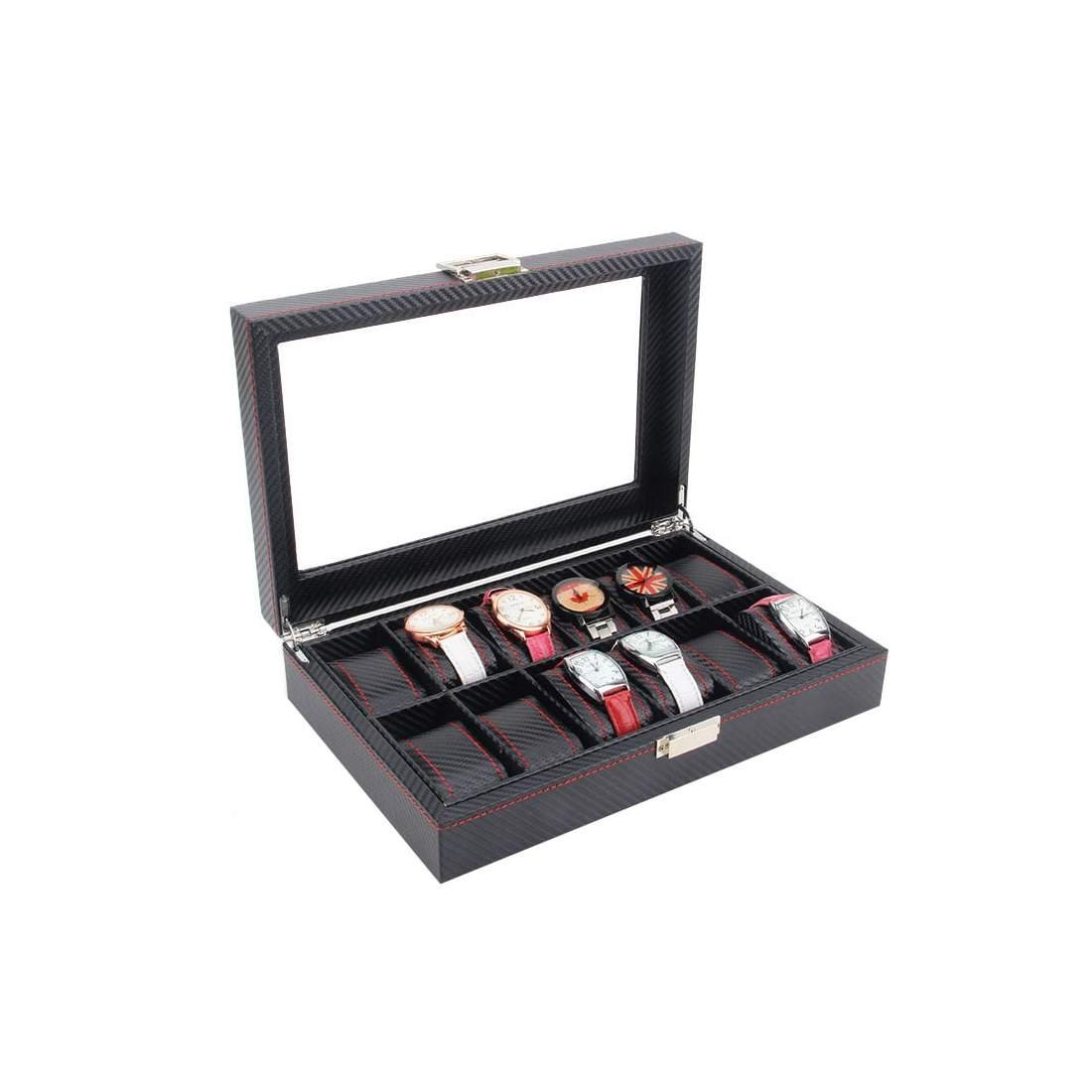 Watchbox / Klockbox 12 klockor Carbon Lyxmodell i svart CW012