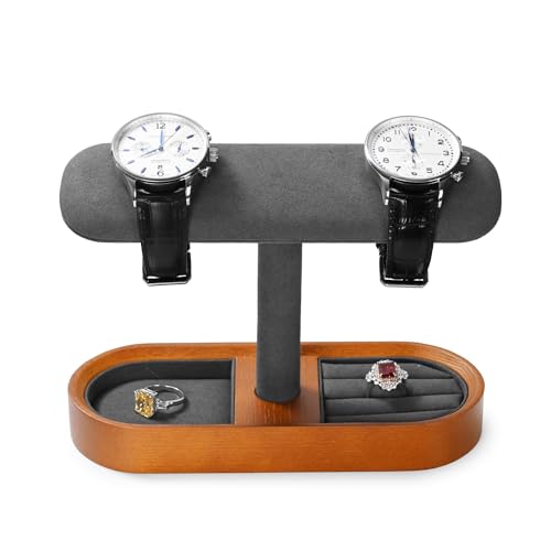 Papten klockstativ trä, armbandstativ klockhållare smyckesstativ med ringar örhängen arrangör smycken display för kvinnor män (mörkgrå)