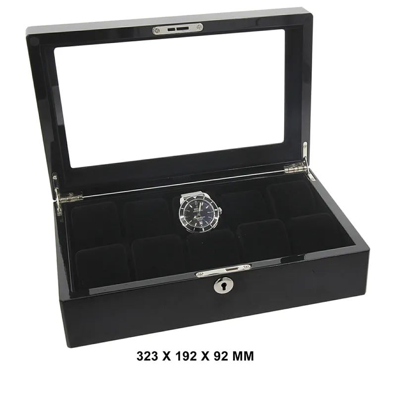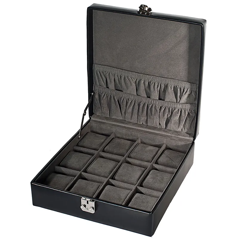 Lyxig Klockbox / Klocklåda för 10 Klockor - Svart/Grå