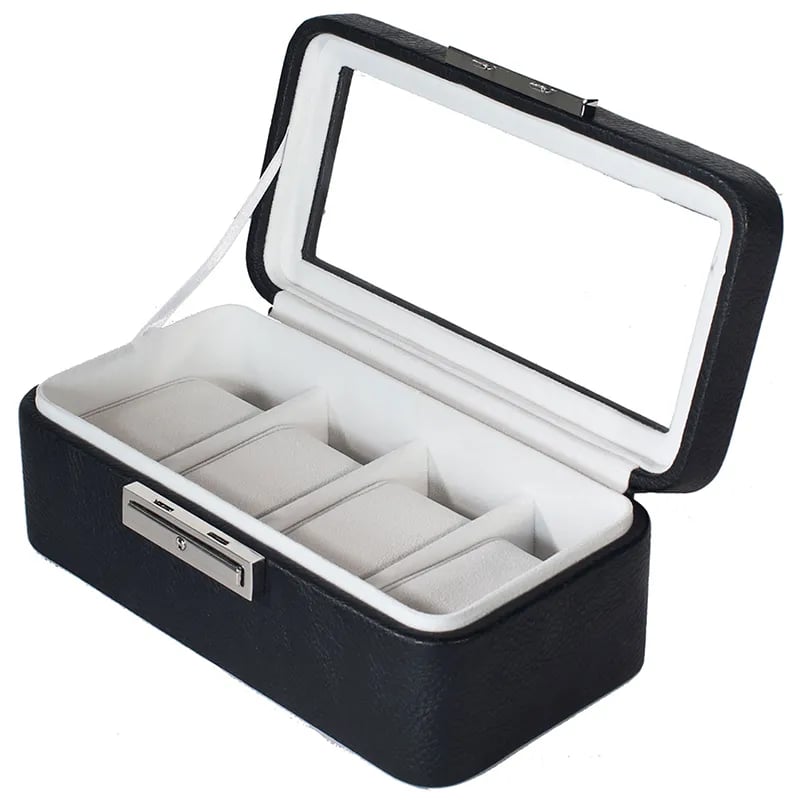 Klocklåda För 4 klockor Svart/Vit (33349) - Fönster i locket
