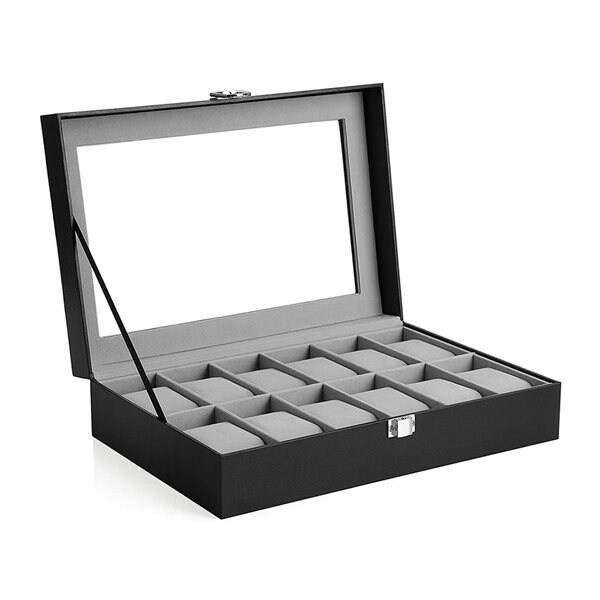 Klocklåda För 8 klockor Svart/Grå 32534 - Fönster i locket