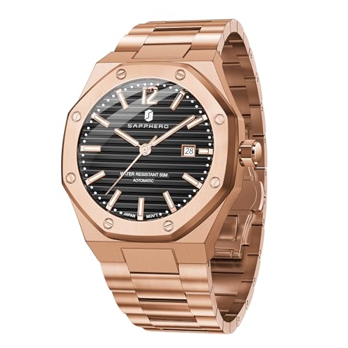 SAPPHERO mekanisk klocka för män automatiska klockor för män datum lyx analog 50 meter vattentät business sport rem rostfritt stål gåvor, Roséguld svart, armband
