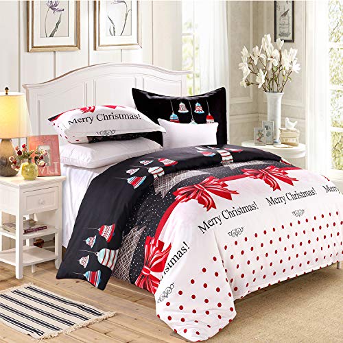 LAMEJOR Påslakanset dubbel storlek jultema god jul/julgran/klockor mönster semester säsong lyx vändbart bäddset täcke överdrag (1 påslakan + 2 örngott)