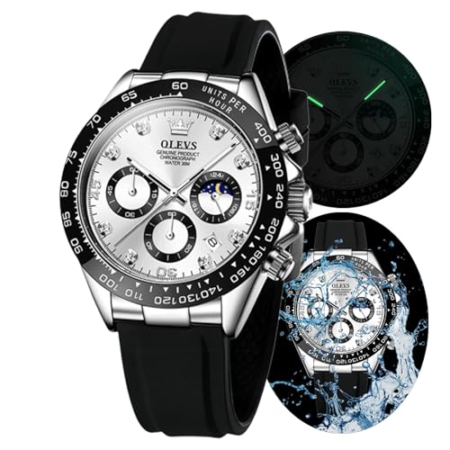 OLEVS Mäns kronograf kvartsklockor, luminous klockor för män, mode, fritid, 2875-ilver vit, Sport lyx