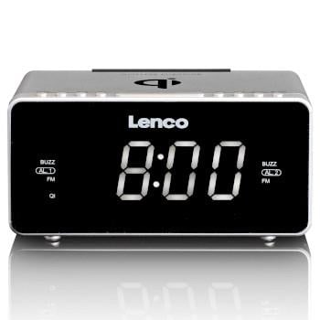 Lenco Stereo FM-klockradio med USB och Qi trådlös laddning för smartphone Silver
