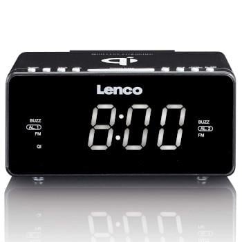 Lenco Stereo FM-klockradio med USB och Qi trådlös laddning för smartphone Svart