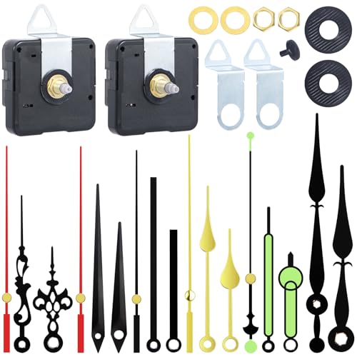 ROELLY 2-delad väggklocka urverk ersättning gör-det-själv urverk med 6 uppsättningar klockvisare, tyst kvartsurverk, 16/20 mm för klockreparation, klockreservdelar