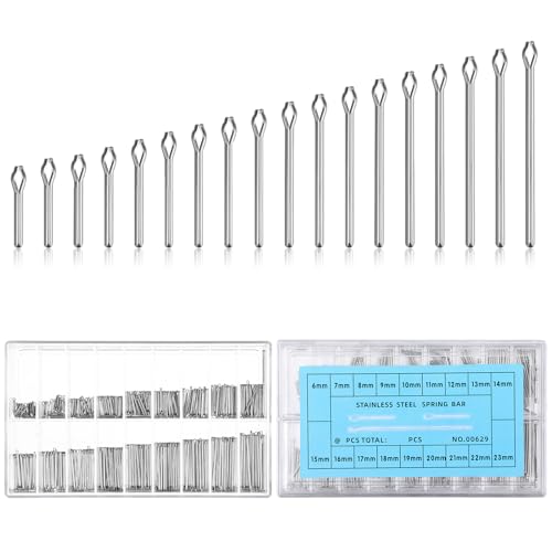 Mabor 360 stycken klockarmband, set med spoil, rostfritt stål, fjäderstänger, fjädersteg, sortiment på klockarmband, länkar, splintpennor för klockreparation, urmakarverktyg, 18 storlekar (6 mm, 7 mm