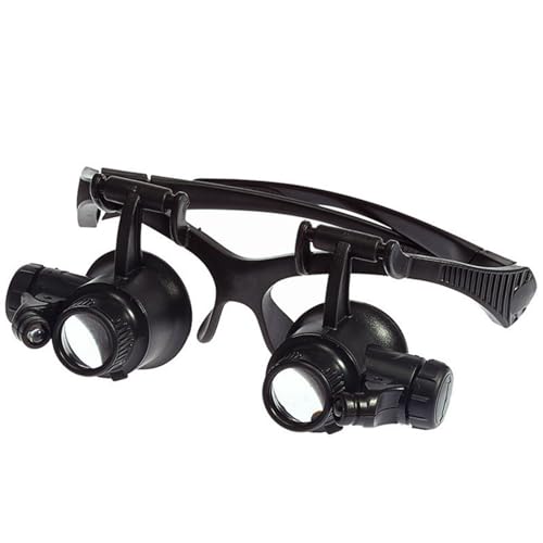 Bysameyee Huvudfäste förstoringsglas, upplyst förstoringspannband glas lupp visir med 2 LED-lampor för nära arbete, smyckesarbete, klockreparation, konst och hantverk, läshjälp