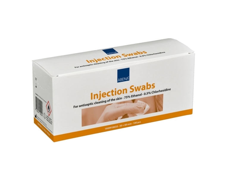 Injektionsserviet, Abena, 3X6cm, 75% Ethanol, 0.5% Klorhexidin, Enkeltpakket