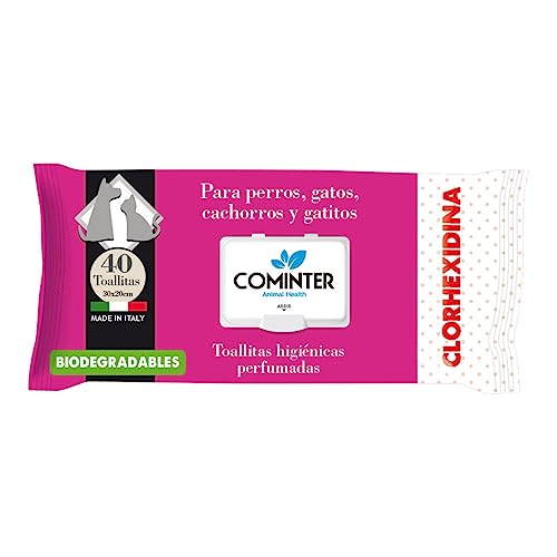 COMINTER Desinfektionsservetter för hundar och katter Biologiskt nedbrytbara med klorhexidin 40 enheter; Våt våtservetter för husdjurshygien, Robust tyg