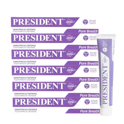 President Kit 6 Tänderskydd mot plack, antibakteriell, halitos, perfekt för att motverka dålig andedräkt och underhåll efter chockbehandling med klorhexidin. RDA 30. 6 x 75 ml