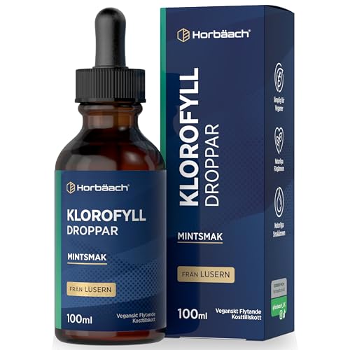 Klorofylldroppar 100ml | Från Alfalfa Flytande Klorofyll | Vegansk Kosttillskott | Hög Dos och utan Konserveringsmedel | Mintsmak | Liquid Chlorophyll | Horbaach