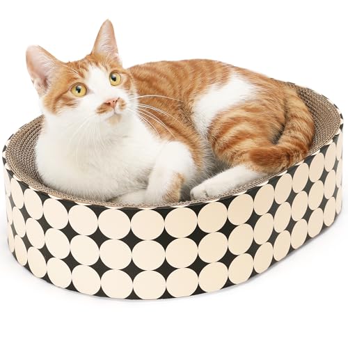 FUKUMARU Kartong Klösbräda för Katter, Oval Klössoffa för Inomhuskatter, Modern och Hållbar Klösboll i Form av Säng, Möbelskydd för Klösning, Svart och vitt