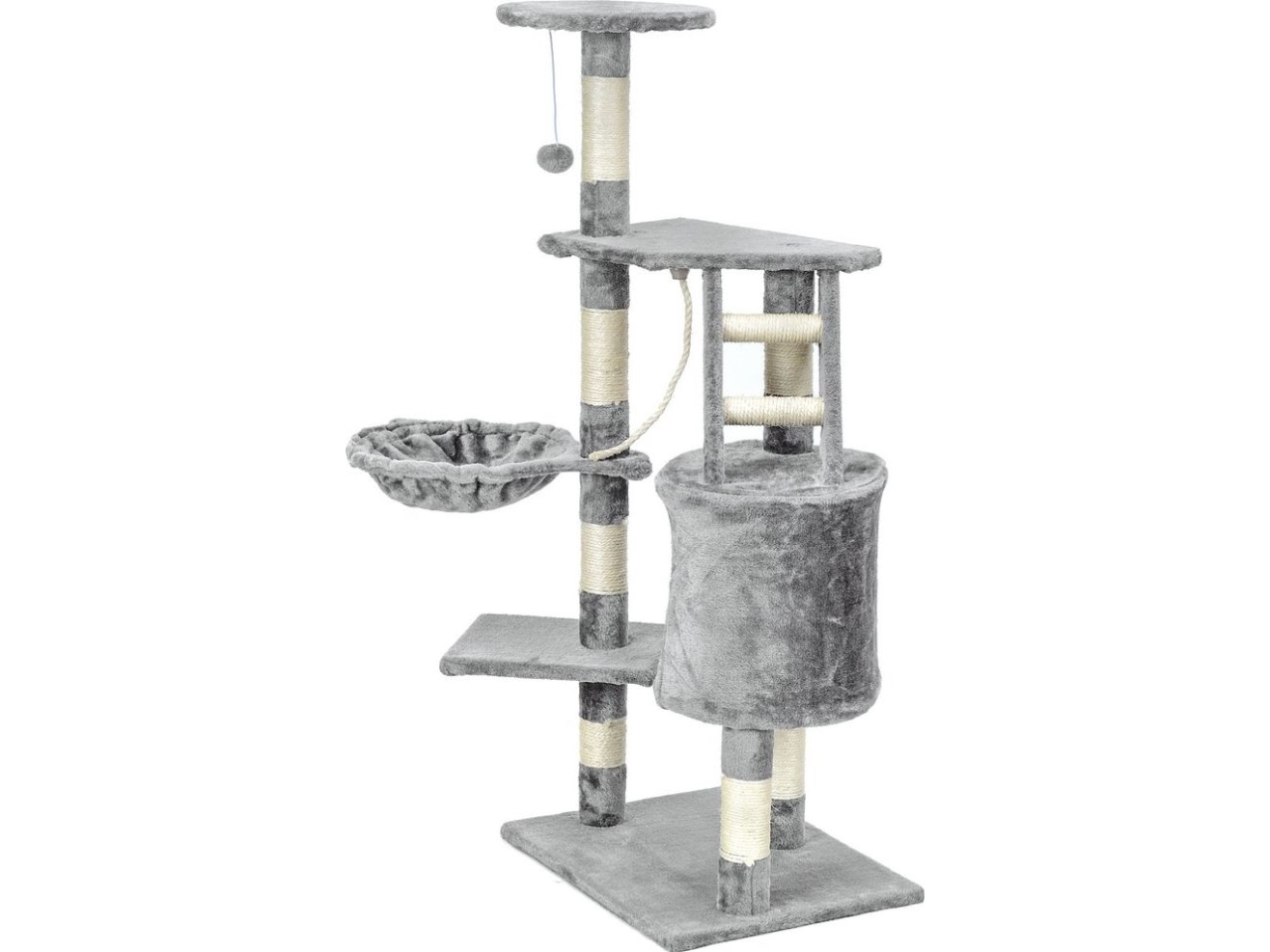 Aibuddy Klösträd för katt, 60 cm hög klösbräda i sisal-och trädstång (interaktiva kattleksaker, dinglande boll, öster att montera, 30 x 30 x 60 cm)