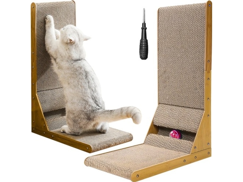 Klösbräda Katt Large 68 cm - L-formad klösbräda för katter - FSC®-certifierad - Vändbar design för upp till 1 års klösglädje - Enkel att montera