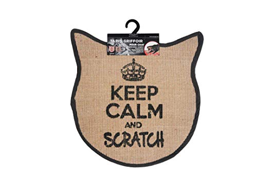 Wouapy - Repmatta för katter – klösmatta av sisal – design och trend – texten Keep Calm and Scratch – grå antracit 55 x 31 x 0,7 cm