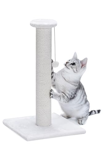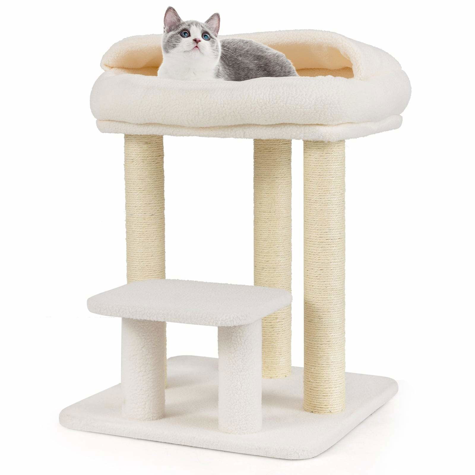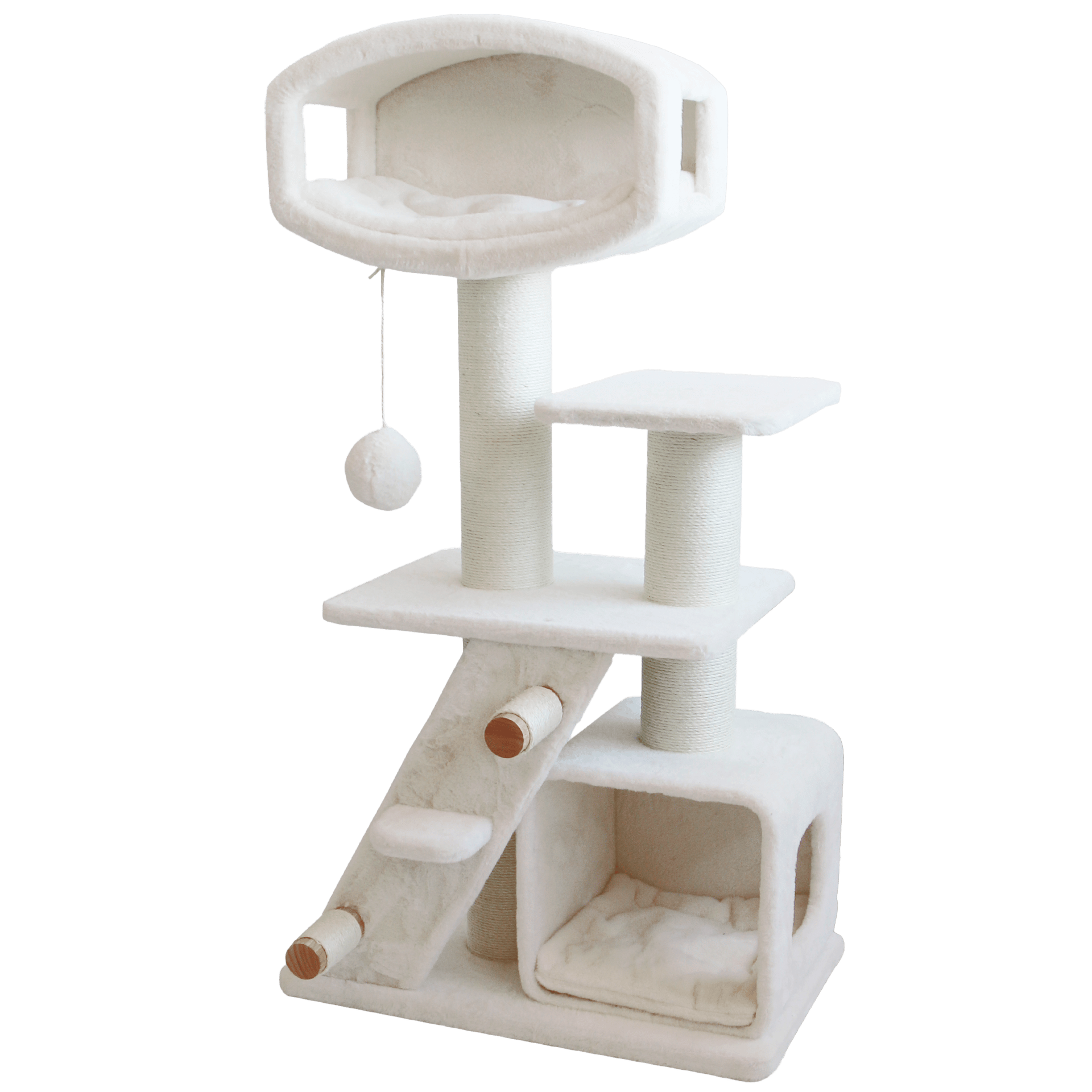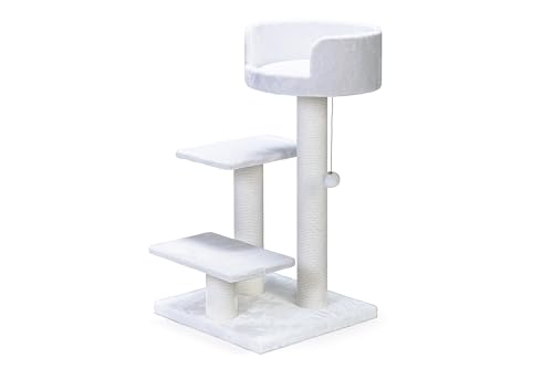 lionto Liten klösträd med plyschboll & klösbåge, höjd 43 cm, mysig liggyta i mjuk plysch, stabil med sisalsnöre för klovård, passar små & stora katter, beige/vit