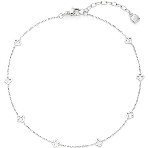 Leonardo Jewels Ankelkedja Ciao Janna, fint rostfritt stål fotkedja med klöverblad ornament, silverfärgad, 25–28,5 cm längd, smycke dam, 023858, Eine Grösse, Rostfritt stål, Ingen ädelsten