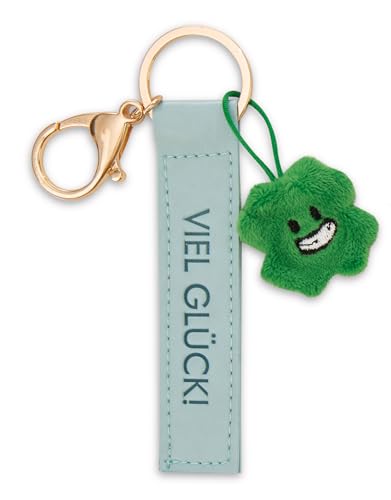 NICI Nyckelring lycka i konstläderband 10 cm med klöverblad – turkos-trogen följeslagare för ryggsäck eller väska, nyckelhållare för små och stora | 62016