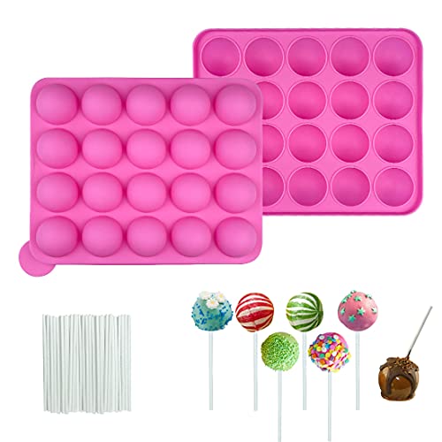 Jesdavan Cake Pop silikonform, kakpop-form, kakpop-set, 20 runda kaka pop silikonbakformar med 20 stycken klubbpinnar för cupcakes, godis, gelé och choklad, non-stick belagd (rosa)