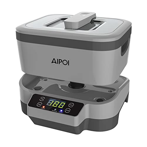 AIPOI Ultraljudsrengöringsanordning 1 200 ml, ultraljudsrengöring med kluven, ultraljudsbad för rengöring för smycken, glasögon, klockor, tandproteser, porslin etc, 70 W ultrasonic-rengörare (grå)