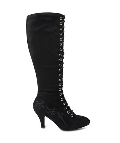 Joe Browns Boho broderade snörning fuskmocka knähöga stövlar för kvinnor, svart, 4 UK, Svart, 4 UK Wide