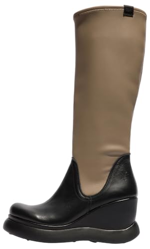 Fly London GLIN129FLY Knähöga stövlar för kvinnor, Svart/Taupe, 6 UK, Svart brungrå, 36 EU