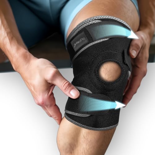 ReaPro Knäbandage justerbart för meniskusterapi, artros och patella, knäskydd öppet för kvinnor och män, knäortos, stabilt knästöd, knäbrace-stöd