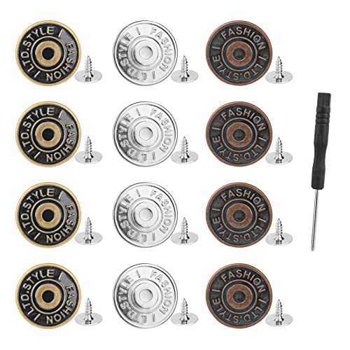 Vicloon Knappar för jeans, 12 st avtagbara knappar för jeans med skruvmejsel, 17 mm justeringsknapp för jeans, metallbyxknappar med gängade nitar för reparation av byxor, DIY, kläder