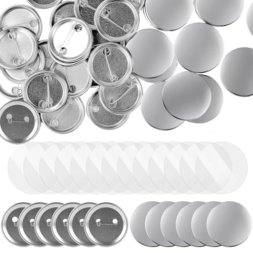LetCart 200 uppsättningar tomma knappar tillbehör runda emblem knappdelar metall knapp pin bricka kit (32 mm)