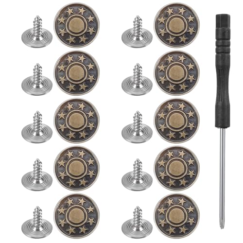 Oruola 10 stycken knappar jeans, byxknappar för nitning, ersättning jeansknapp utan sömnad, jeansknappar metall av metall för avtagbara, justerbara byxknappar för jeans, gör-det-själv-knappar