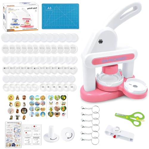 Dekaim 25 + 32 + 58 mm knapptillverkningsmaskin, gör-det-själv-knappmaskin med 300 st knappdelar och bild och skärpackningar för anpassade stiftmärken (rosa)