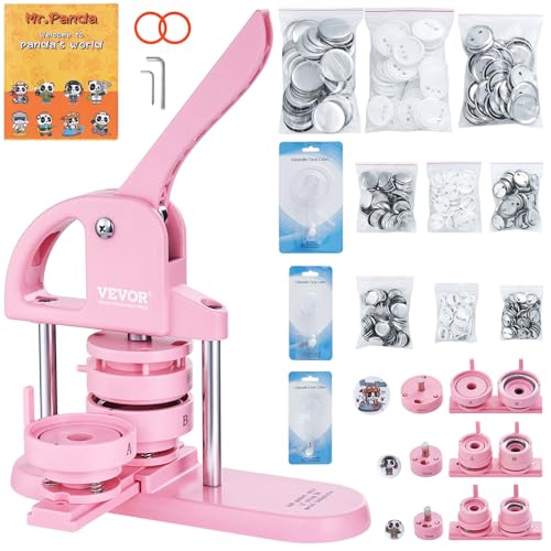 VEVOR Knappmakare, 25/32/58 mm (1/1,25/2,3 tum) 3-i-1 stiftmaskin, 300 st knappdelar, knappmaskin med magisk panda bok, ergonomiskt båghandtag stanspress-kit, för barn gör-det-själv-gåvor, rosa