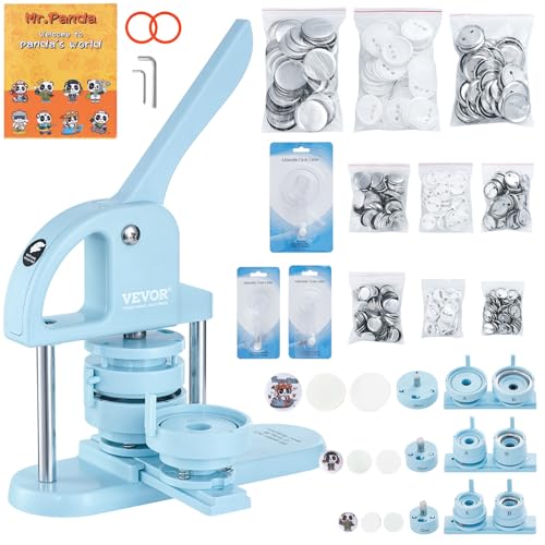 VEVOR Knappmakare, 25/32/58 mm (1/1,25/2,3 tum) 3-i-1 stiftmaskin, 300 st knappdelar, knappmaskin med magisk panda bok, ergonomiskt båghandtag stanspress-kit, för barn gör-det-själv-gåvor, blå