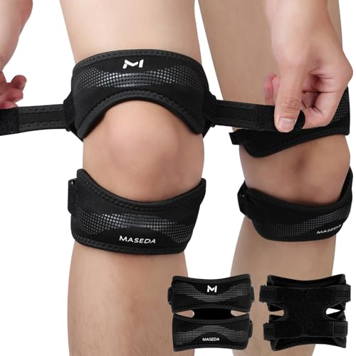 AGPTEK Patella-senknäband 2-pack, patellar-senstöd med silikagel, knäskydd för vandring, fotboll, basket, löpning, volleyboll, tendinit eller knäsmärta, svart