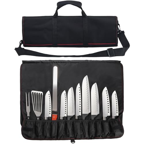 Tosnail Chef knivrullväska, slitstark knivväska med 21 spår och 1 stor blixtlåsficka, lätt att bära handtag och axelrem, multifunktionsknivarfodral för resor camping vandring, Svart, Modern