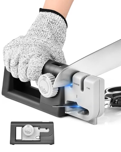 OTraki Knivslipare, manuell köksknivslipare med justerbar vinkelhandtag, bärbar knivslipare för rak/sax, flexibel och grå