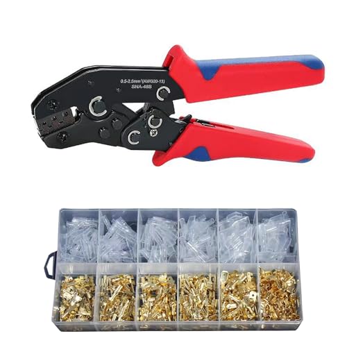 AGSYFFD 450 st kabelterminal krimpverktygssats, spadkontakt, knimpverktyg, spärrhake, kniptång, AWG 22-16 (0,5-1,5 mm²) mässing hane hona kabelterminalanslutning