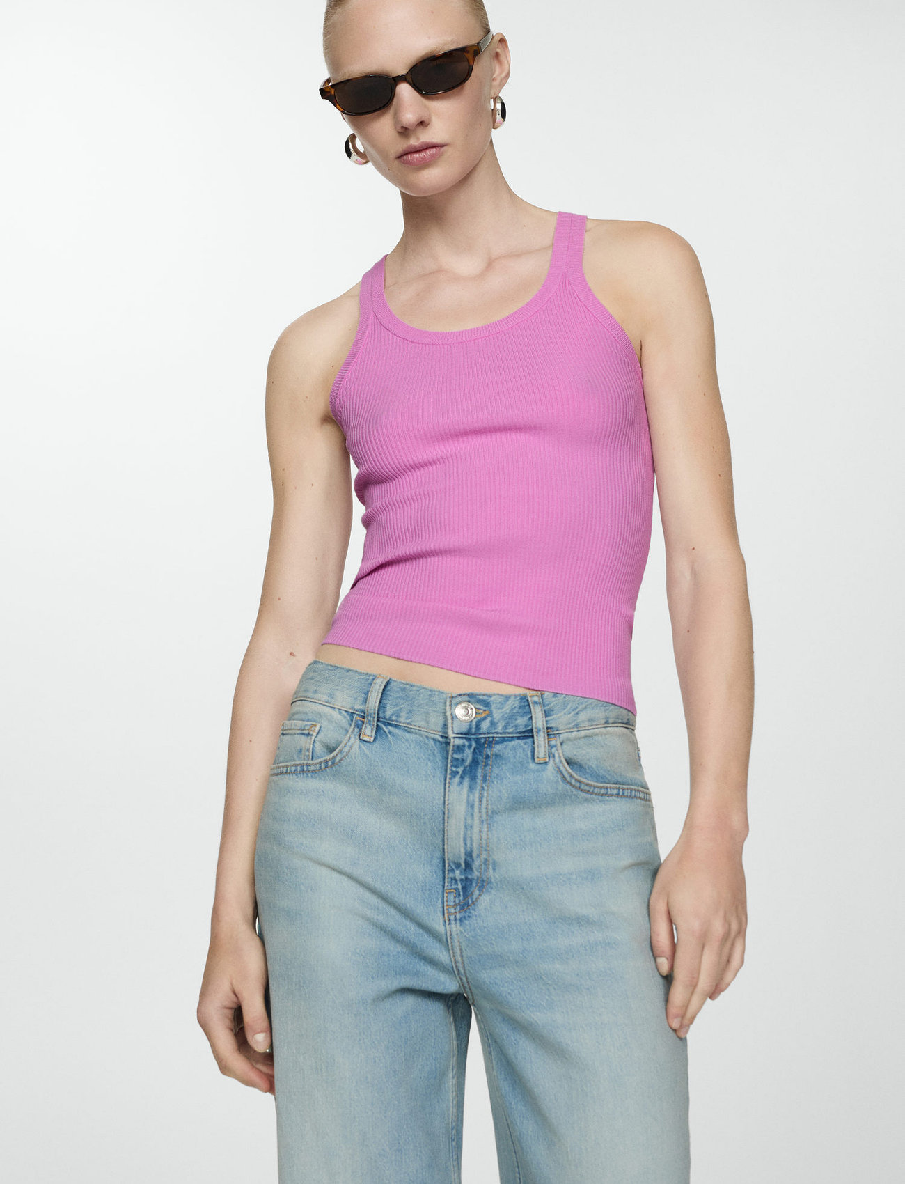 Mango Knit Strap Top - Pink - XS