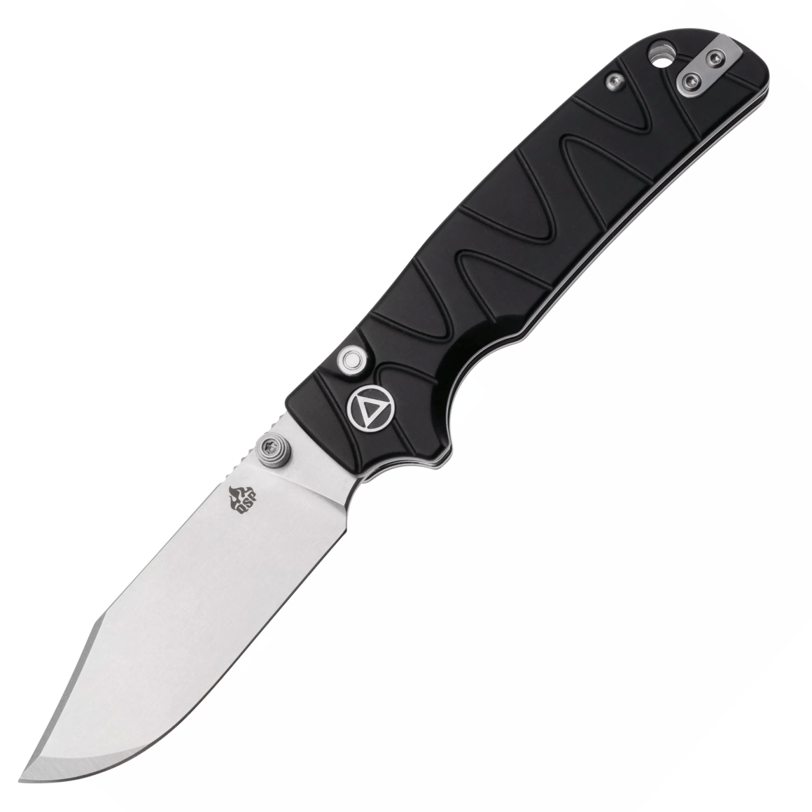 QSP Kniv Kali, Knapp lås, 14C28N stentvättad, Svart aluminium QS159-F1